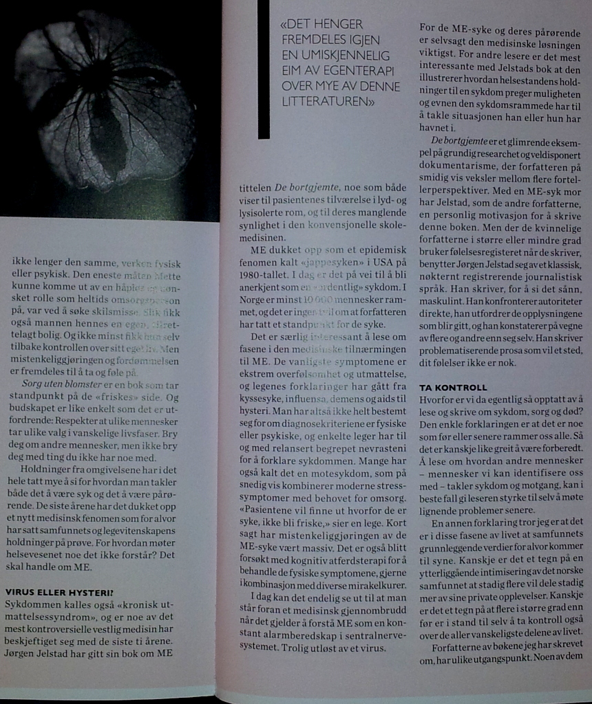 Tidsskriftet Prosa har i siste nummer anmeldt seks bøker som tar for seg sykdom, og de skriver en flott omtale av De Bortgjemte.